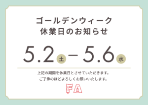誠に勝手ながら、下記の通り弊社休業日とさせていただきます。 GW期間の営業日 5月2日(土)~5月6日(水)にいただいたお問い合わせは、5月7日(木)以降順次対応いたします。ご不便おかけいたしますが、何卒ご了承いただきま […]